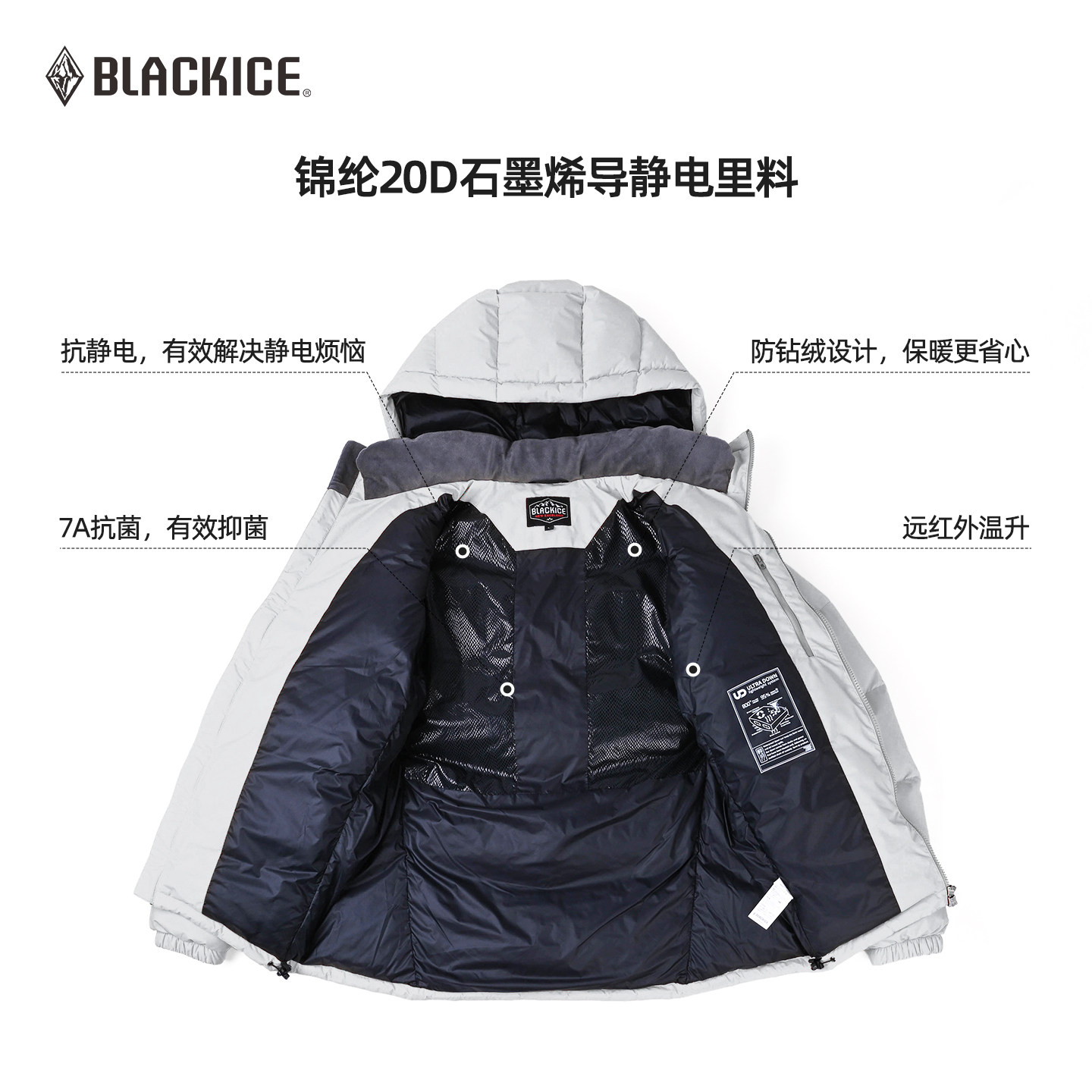 黑冰户外羽绒服男800蓬鹅绒服防风耐磨连帽加厚保暖三防外套8528