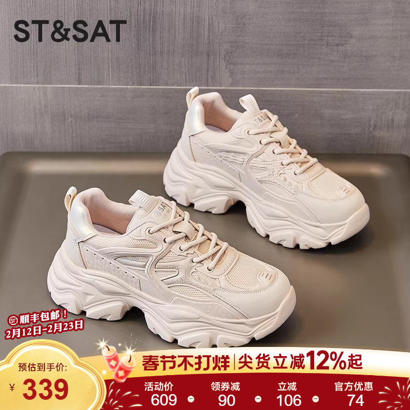 星期六厚底老爹鞋女春新款爆款女鞋增高鞋女士运动休闲鞋网面透气