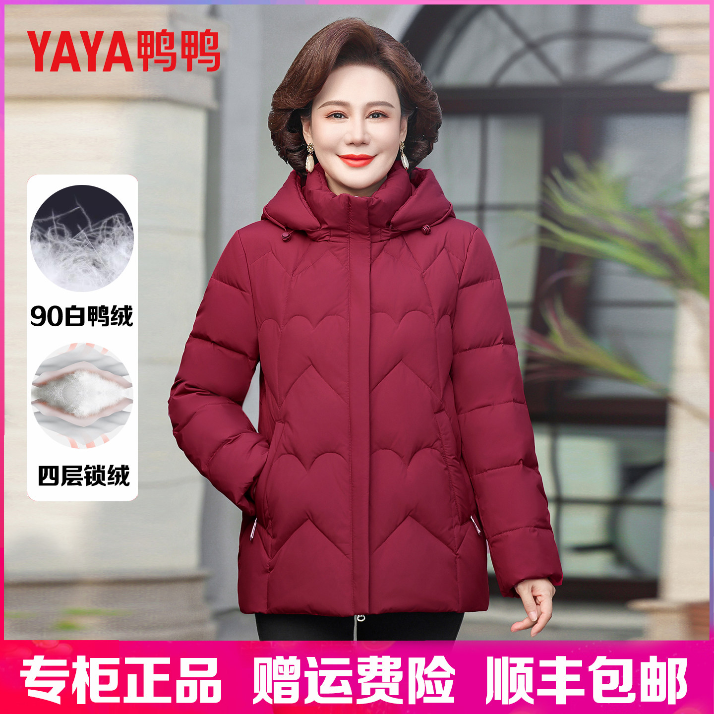 鸭鸭羽绒服女短款妈妈装2025冬新款中老年加厚白鸭绒大码宽松外套
