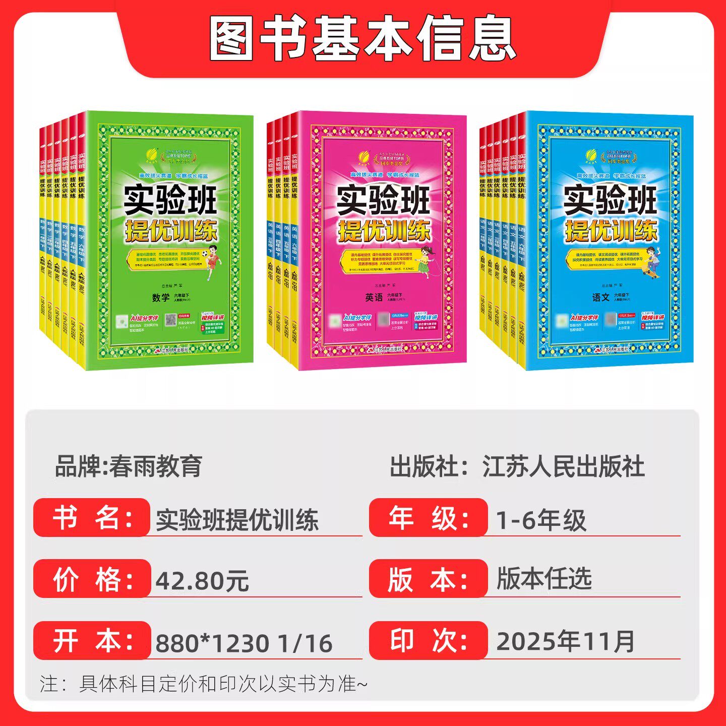 2026新版实验班提优训练一二三四五六年级上册下册语文人教版数学北师版江苏教版冀教同步练习册英语训练春雨教育期中期末考试卷子