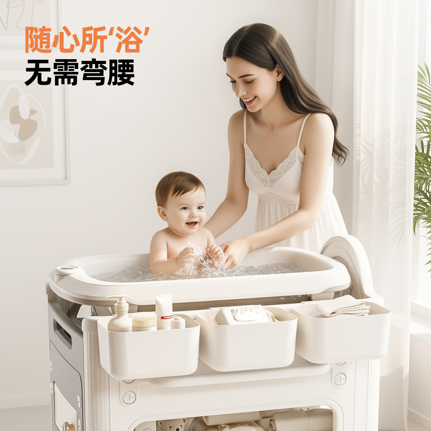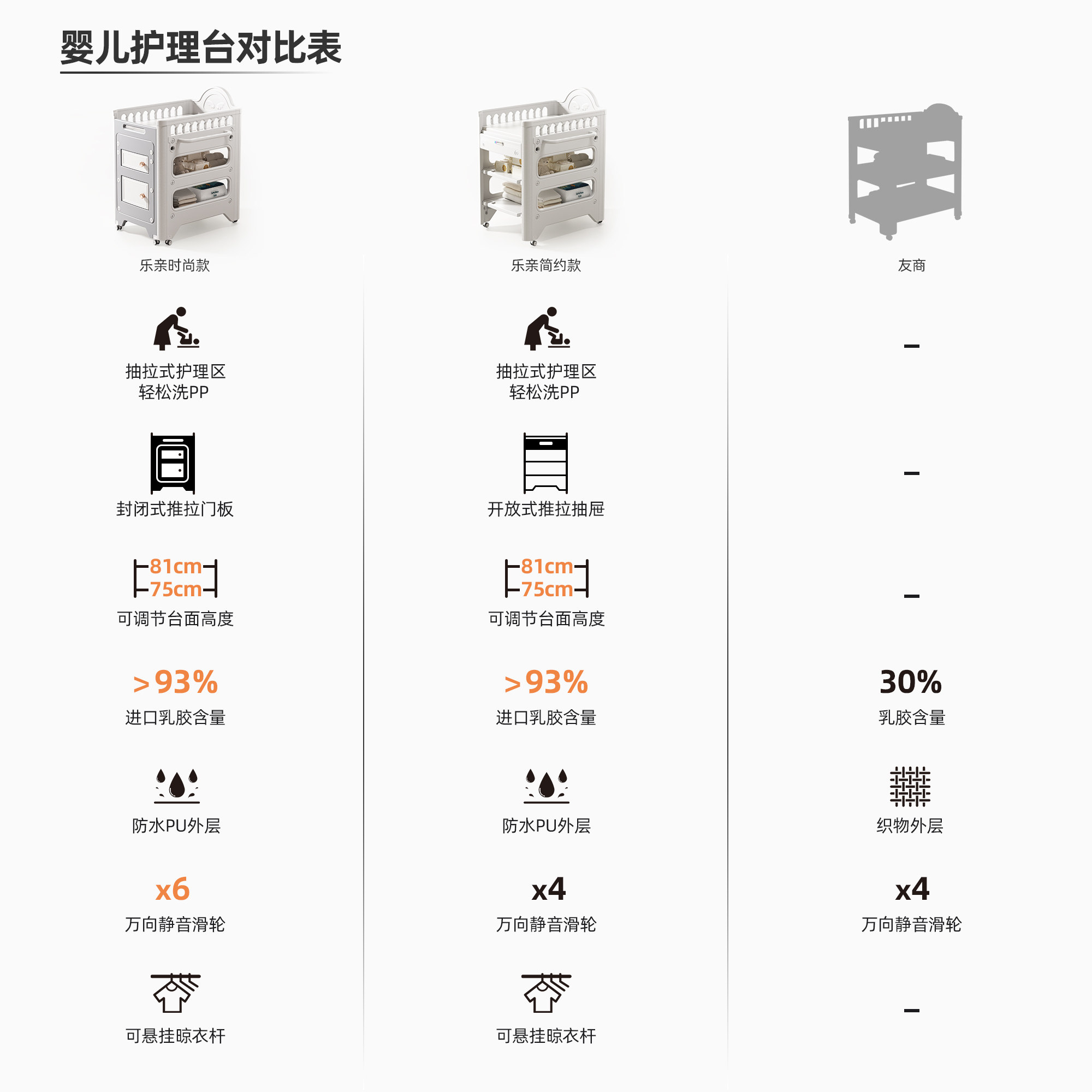 乐亲抽拉式尿布台多功能婴儿护理台二合一垫子收纳盒换尿布婴儿床