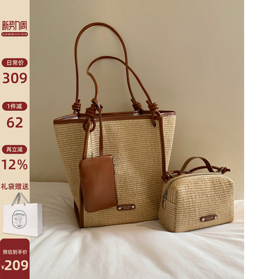 南风Chio2nd 一包三背 里昂假日托特包包女编织包单肩草编子母包