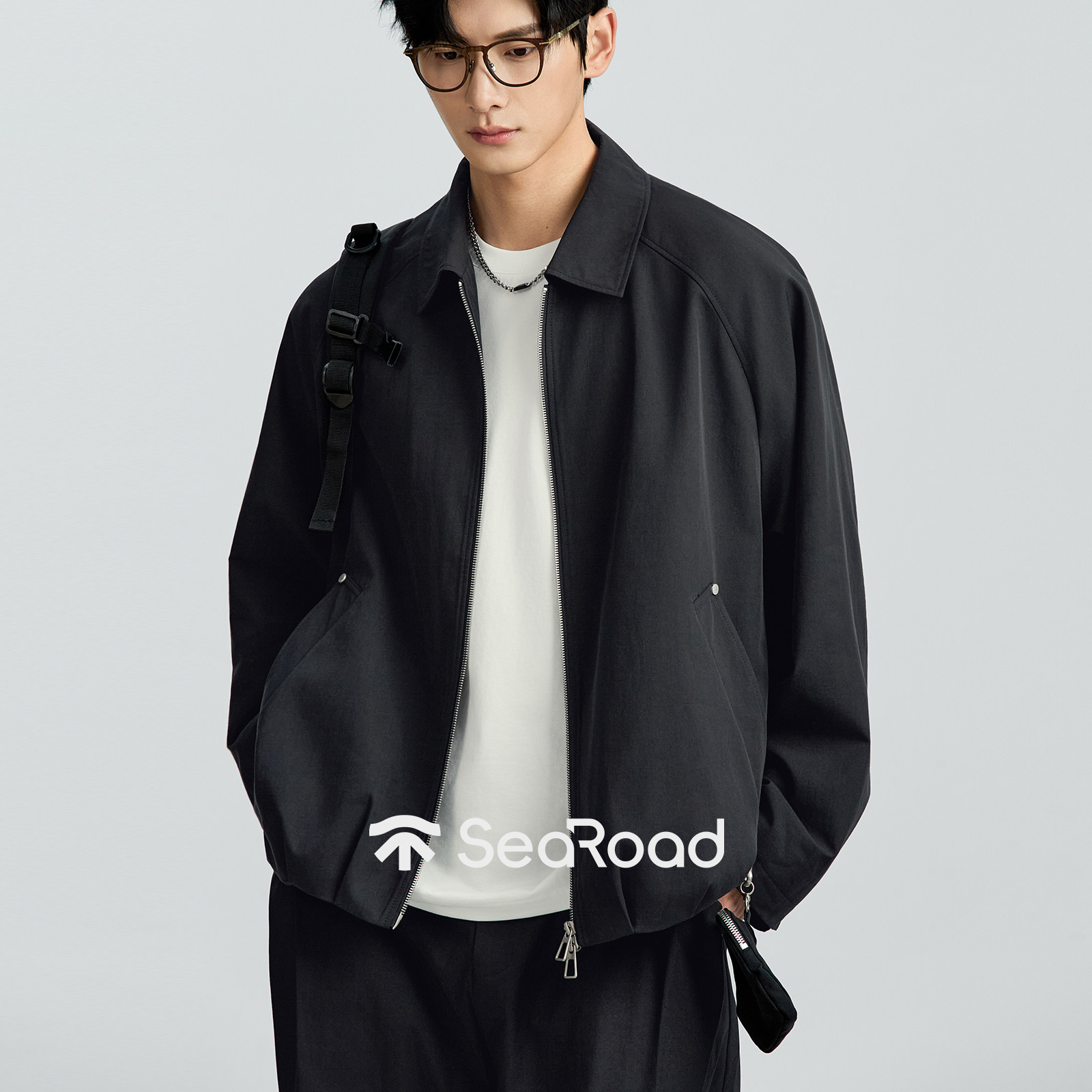 海上公路小包设计感夹克男士春季插肩袖大阔版松弛休闲通勤外套