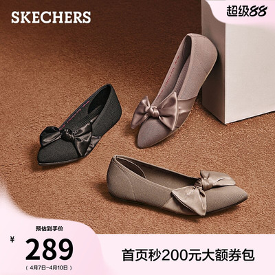 斯凯奇女蝴蝶结浅口单鞋夏季简约玛丽珍鞋时尚百搭尖头平底淑女鞋