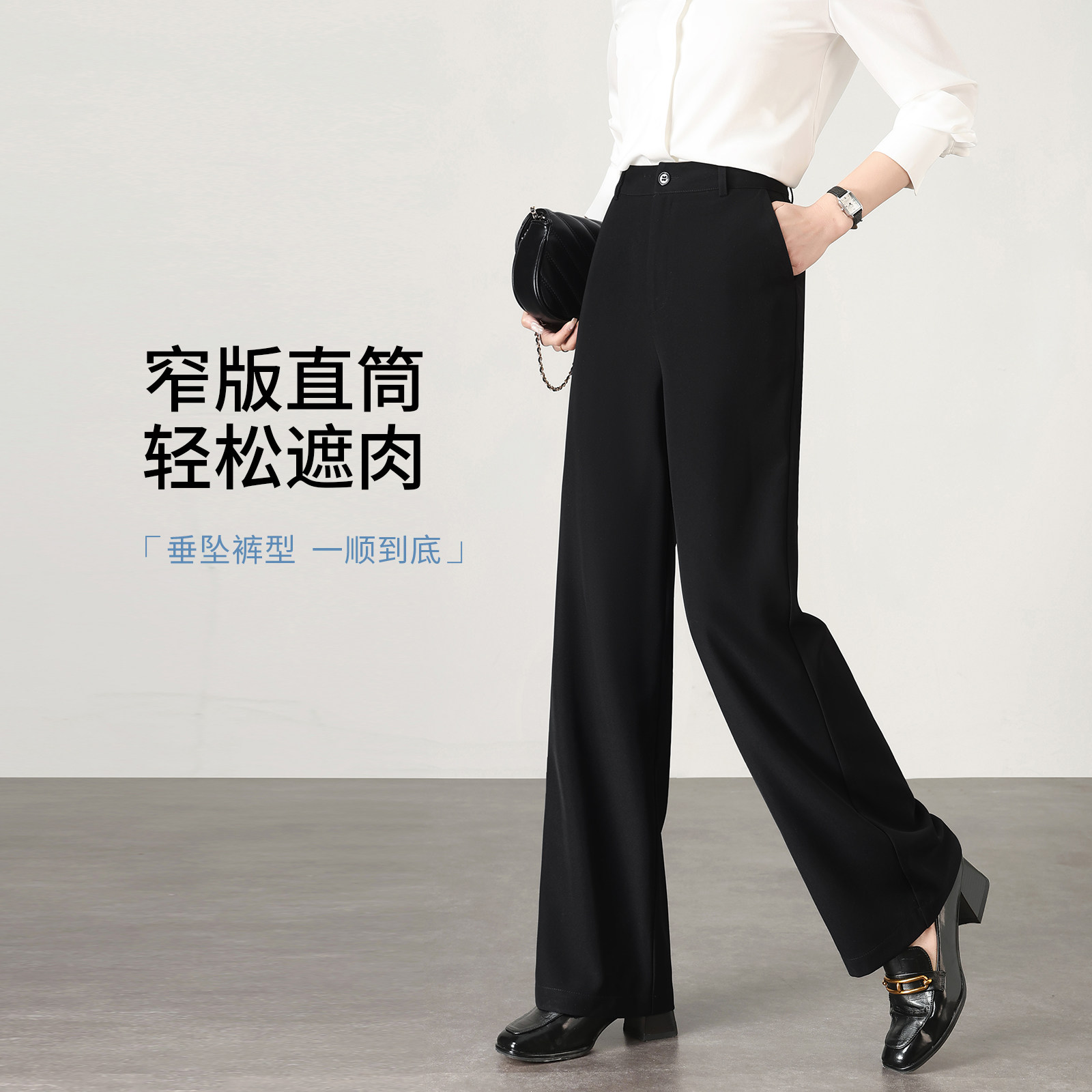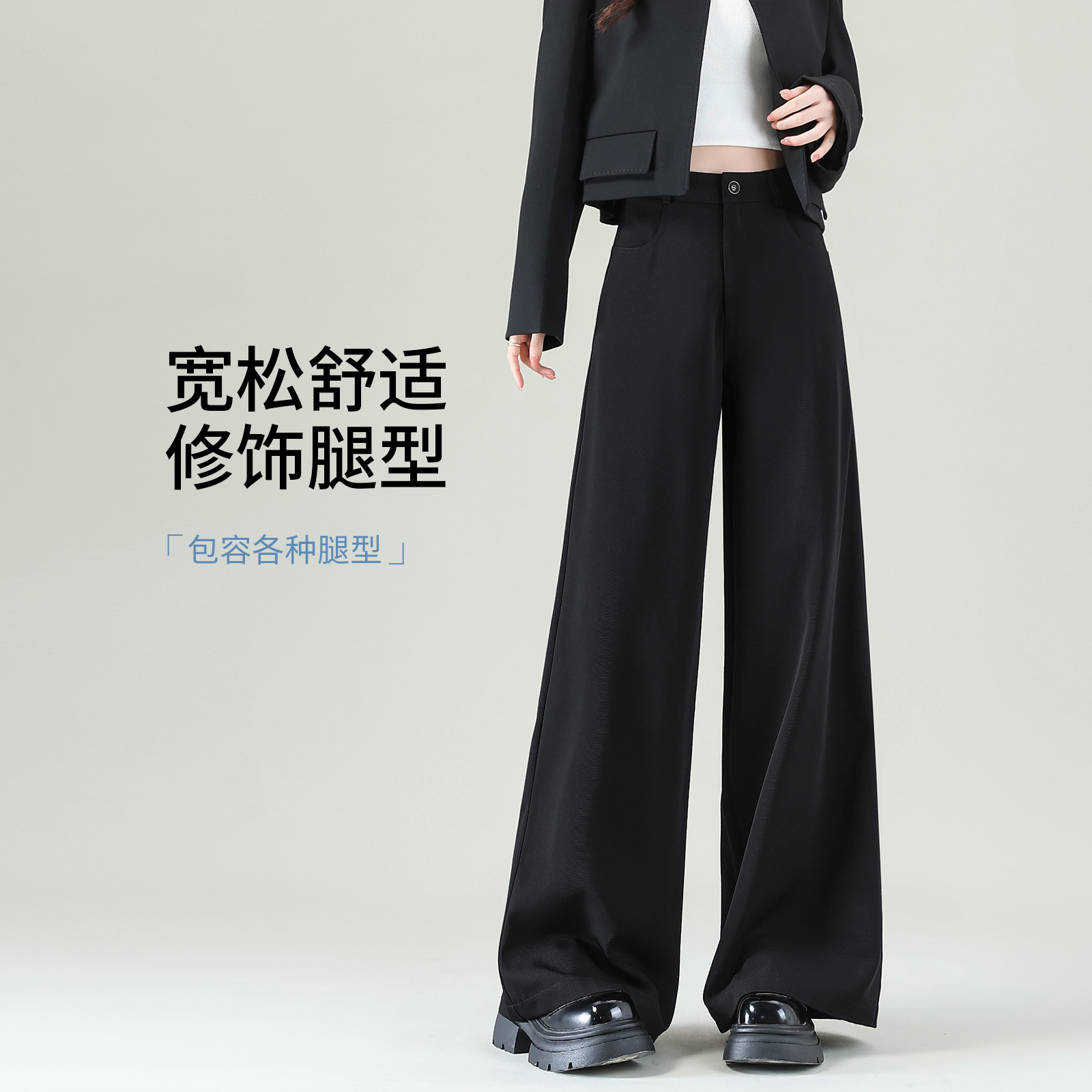黑色直筒裤 春季新款 垂感宽松显瘦阔腿裤子