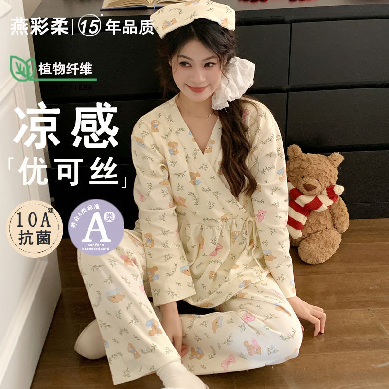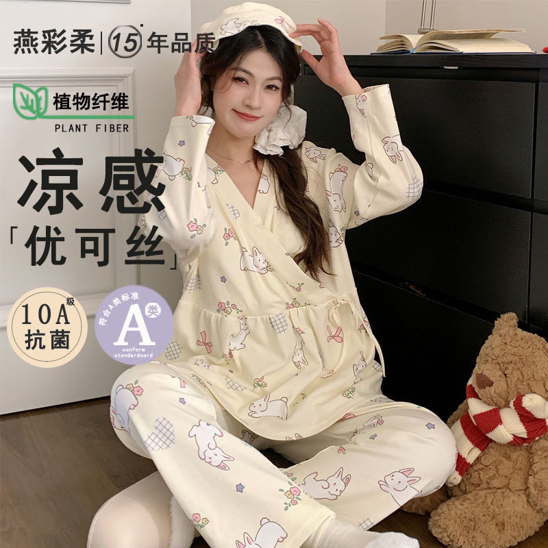 睡衣女春秋月子服新中式夏季抗菌孕产妇哺乳带胸垫家居服四季可穿