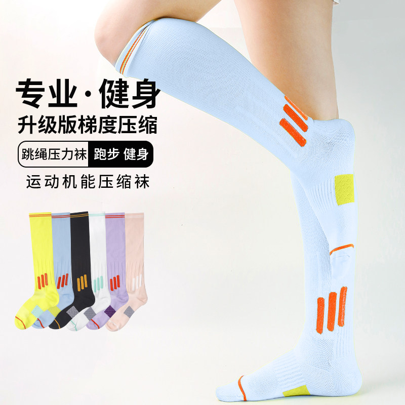 女士运动压力袜夏季速干小腿袜压缩马拉松跑步健身长筒袜