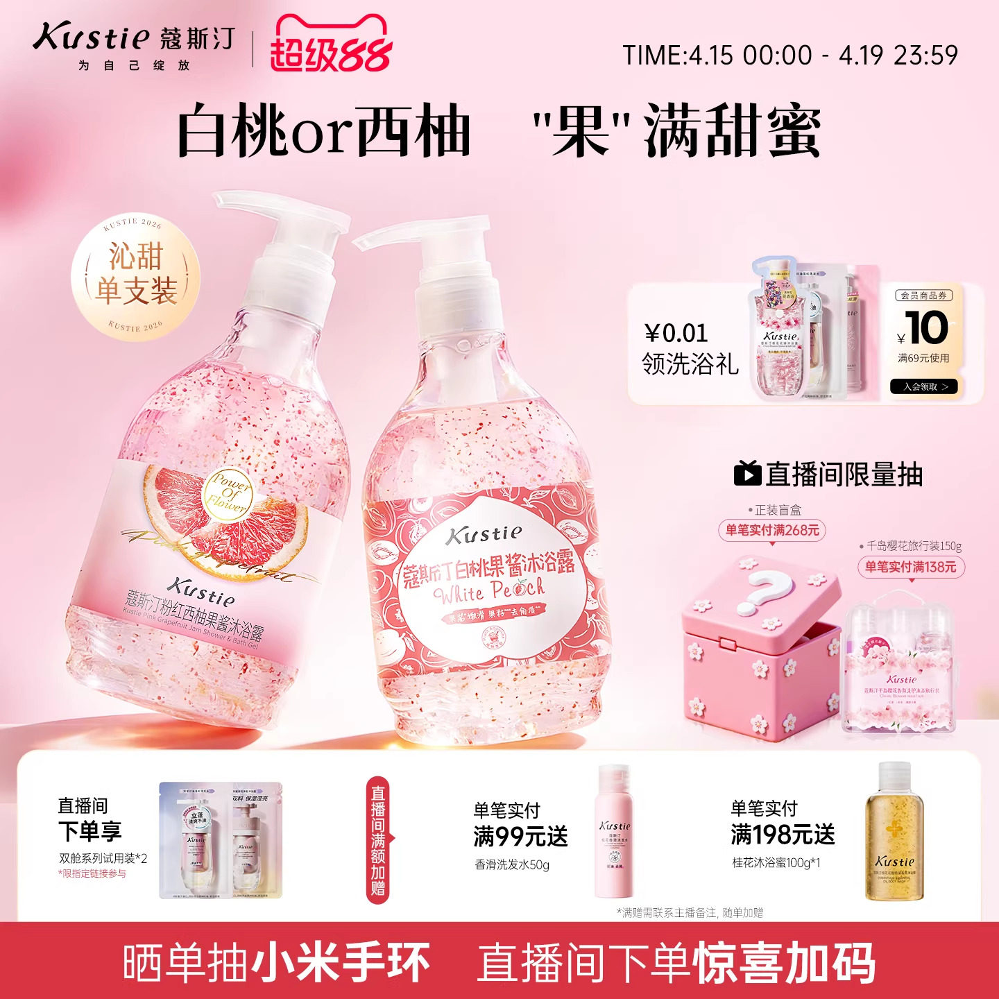 蔻斯汀白桃西柚沐浴露水果味清香果酱沐浴磨砂清爽男女士通用