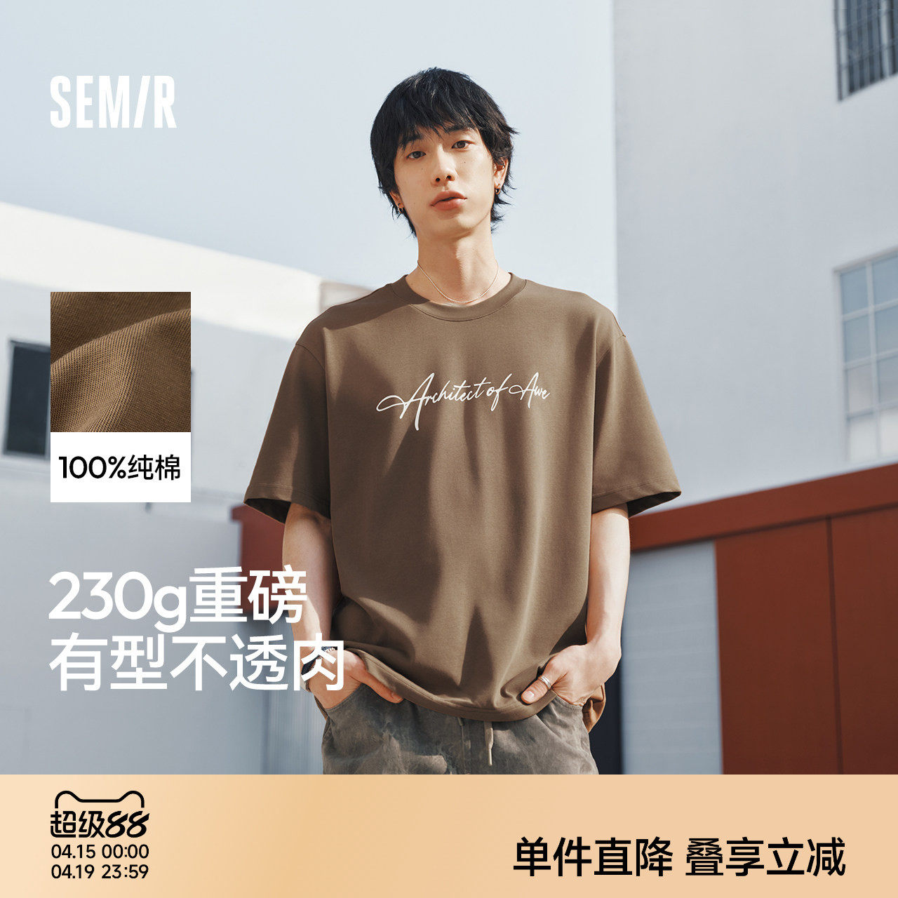 潮流手绘字母短袖T恤 宽松圆领针织衫