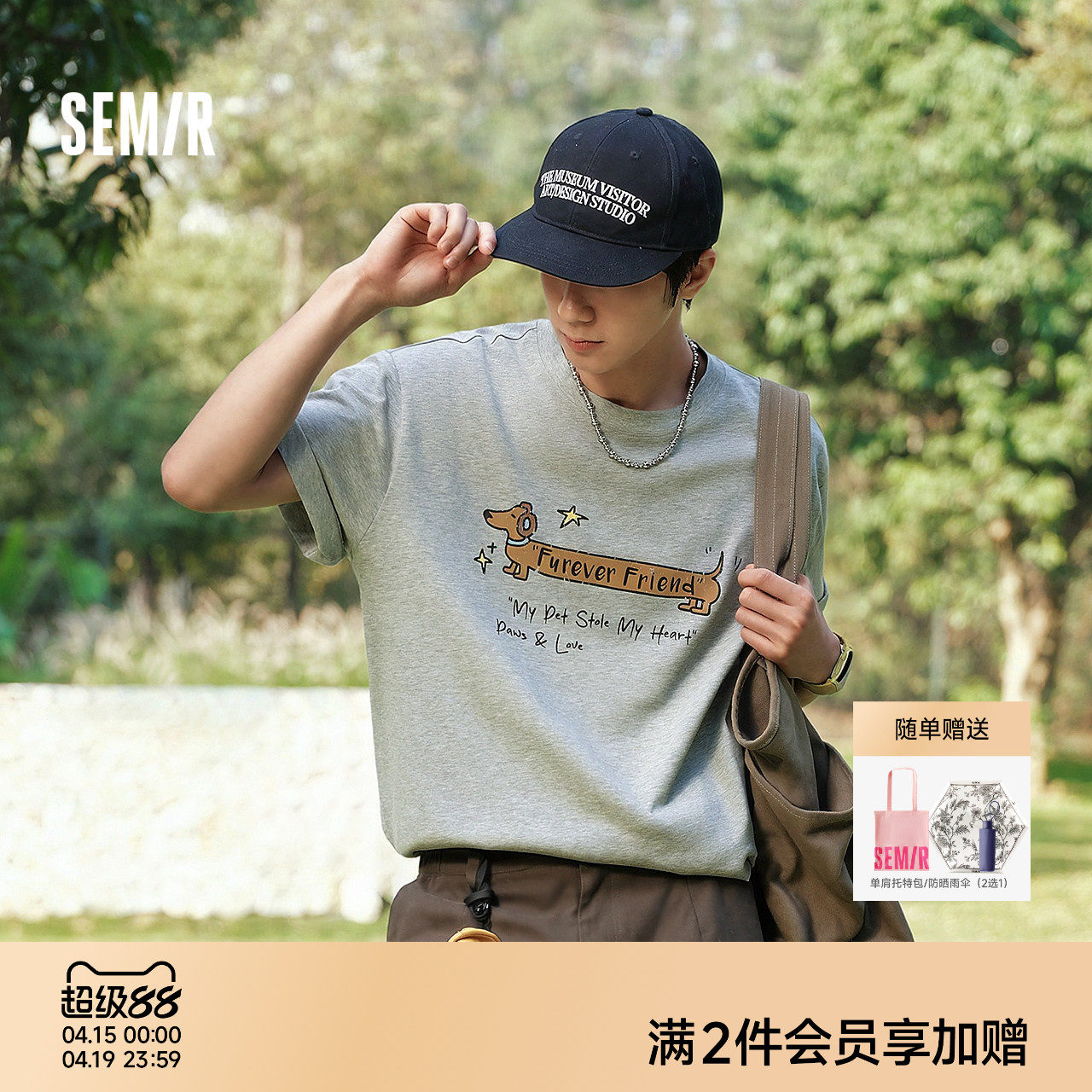 复古治愈萌宠短袖T恤 字母印花针织衫