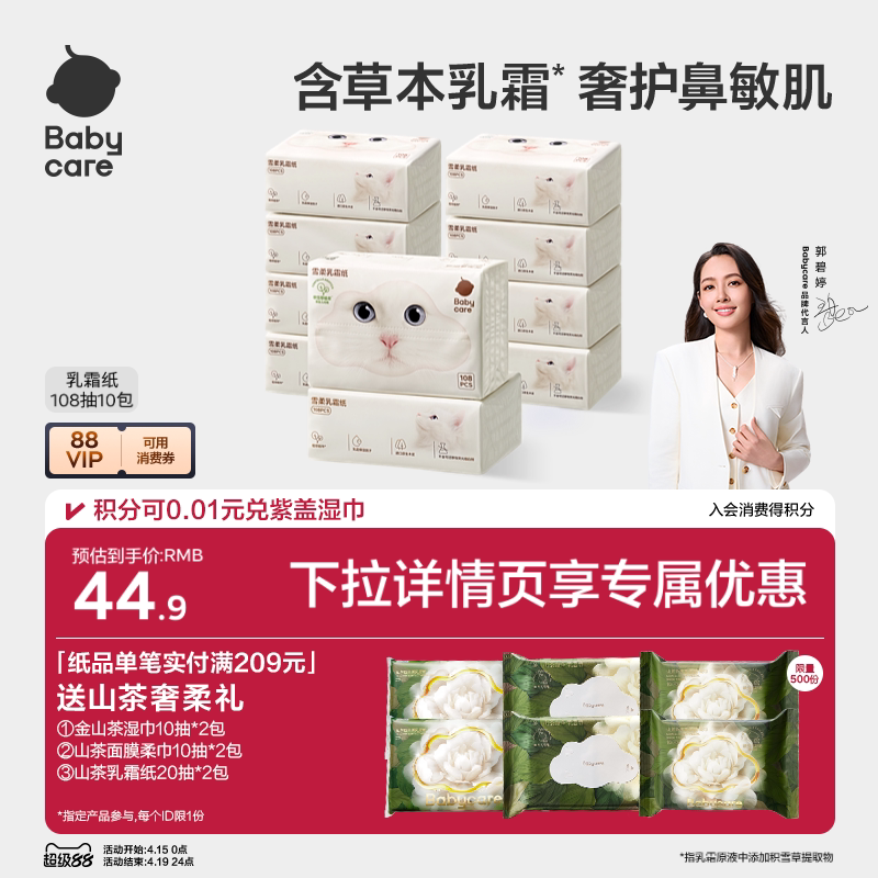 babycare雪柔乳霜纸巾云柔巾积雪草抽纸婴儿专用柔纸巾宝宝卫生纸