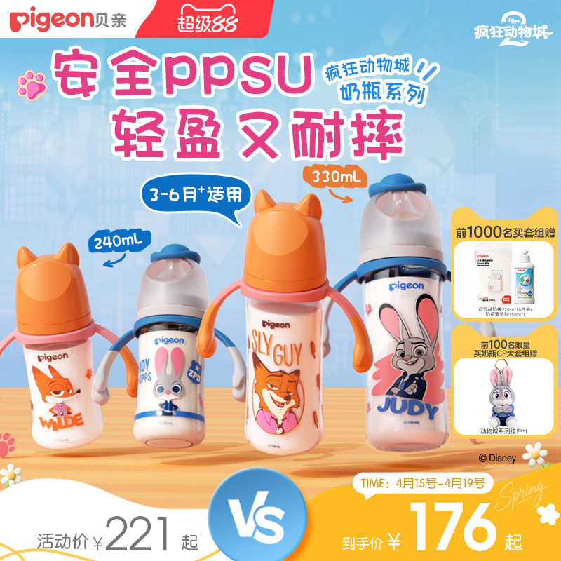 贝亲迪士尼疯狂动物城PPSU奶瓶大容量新生儿防胀气防呛官方旗舰店