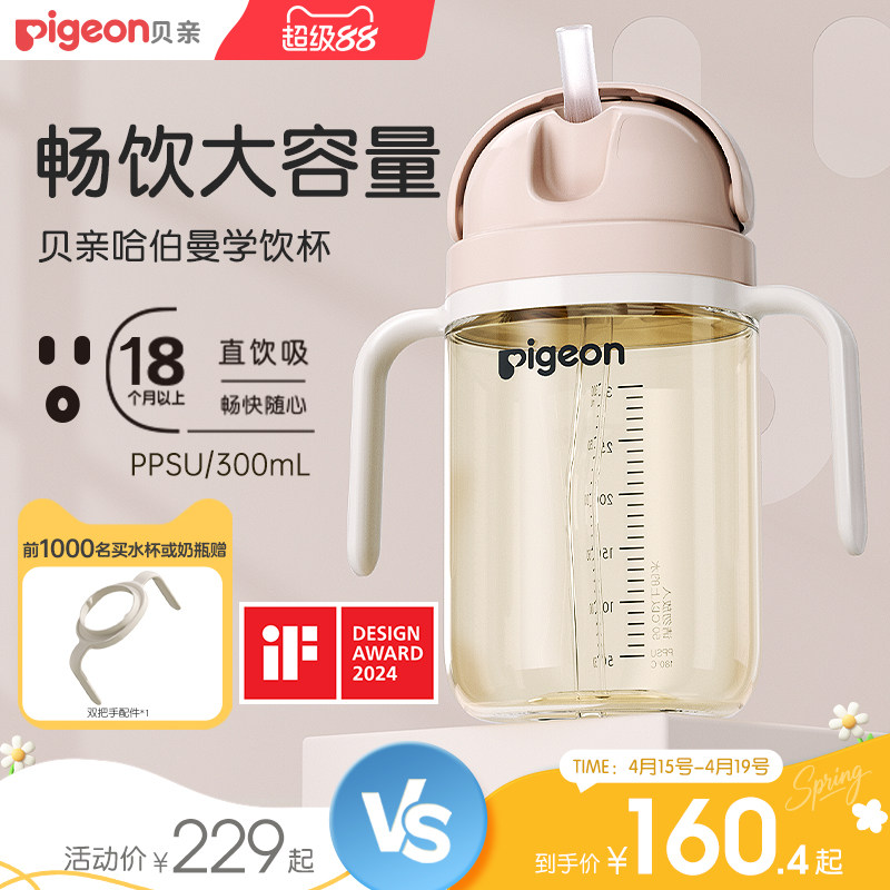 Haberman哈伯曼婴儿PPSU奶瓶学饮直饮吸管水杯贝亲官方旗舰店正品