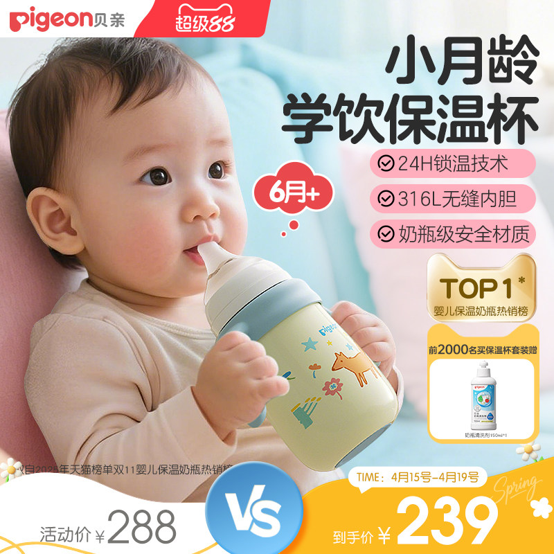 贝亲宝宝保温杯儿童水杯春夏季保温吸管奶瓶学饮防呛防漏6-18月+