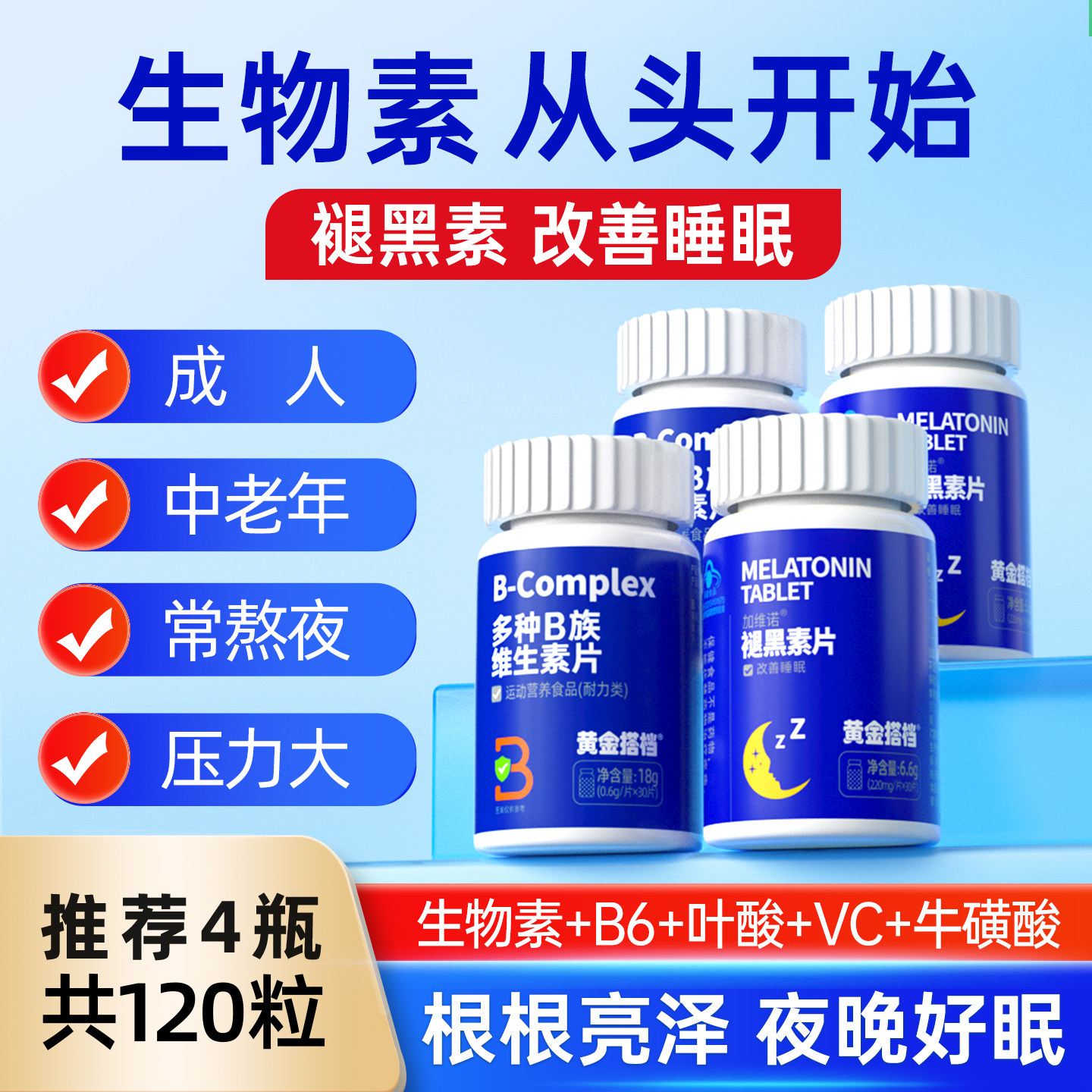 生物素B族复合维生素片b2能量代谢b6b12非生白发非防脱提高男女性