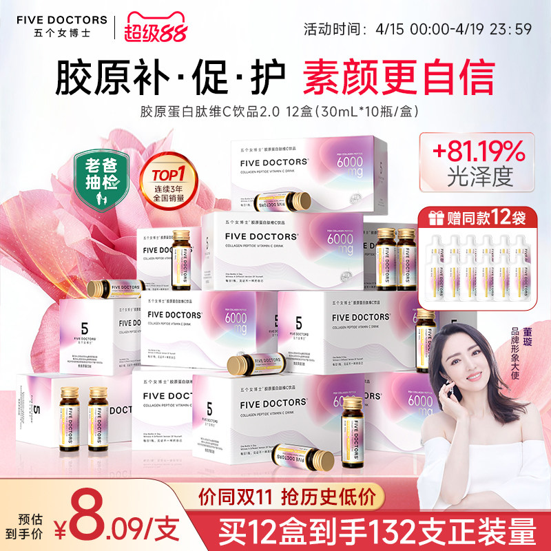 五个女博士鱼胶原蛋白肽饮口服液小分子肽维c内服正品官方旗舰店