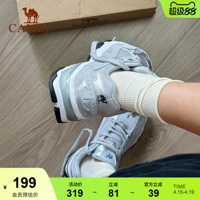 骆驼慢跑鞋漫游女运动鞋透气老爹鞋透气银灰色复古休闲鞋贝果鞋子